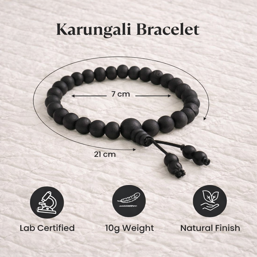 కరుంగలి కంకణం ధరించడం మరియు ఉపయోగించడం వల్ల విజయం లభిస్తుంది, వృత్తి వృద్ధి చెందుతుంది, నగదు కొరతను నివారిస్తుంది, మనశ్శాంతిని కలిగిస్తుంది, విజయానికి దీర్ఘకాలంగా ఉన్న అడ్డంకులను తొలగిస్తుంది, సోమరితనం, ఆందోళన మరియు మానసిక భయాన్ని తొలగిస్తుంది, కరుంగలి అంగార గ్రహానికి చెందినది. ఈ మూల కరుంగలి కంకణం ధరించడం ద్వారా అంగారకుడు ఇచ్చే అన్ని ప్రయోజనాలను పొందవచ్చు.