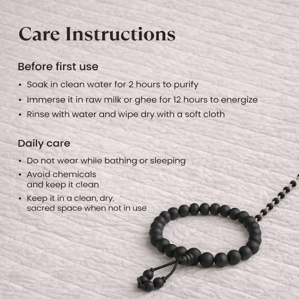 - ఈ మాల కాటన్ దారంతో తయారు చేయబడింది కాబట్టి నిద్రపోయే ముందు తీసివేయడం మంచిది, మీరు దానిపై రాగి/వెండి/బంగారం దారం వేస్తే మీరు దీన్ని ఎల్లప్పుడూ ధరించవచ్చు. ఎప్పుడు ధరించకూడదు? అవును, మాంసాహారం తినడానికి ముందు తొలగించాలి మరియు తల స్నానం చేసిన 8 నుండి 10 గంటల తర్వాత మళ్ళీ ధరించవచ్చు, అలాగే అంత్యక్రియలు/మరణ సమయంలో కూడా ధరించకూడదు, తల స్నానం చేసిన తర్వాత మళ్ళీ ధరించవచ్చు.